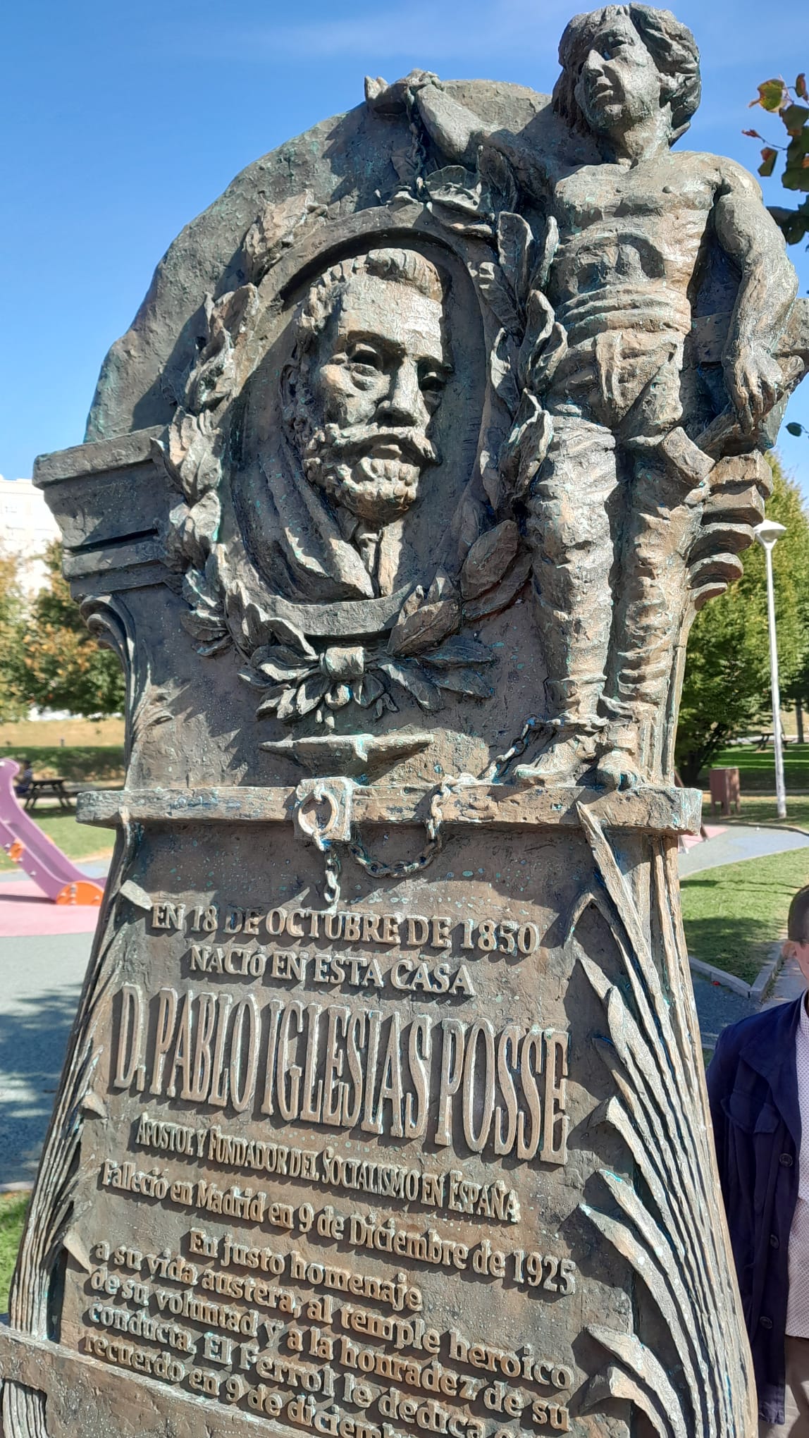 El pasado viernes 17 de octubre, coincidiendo con el 175 aniversario del nacimiento de Pablo Iglesias, el PSOE y la UGT realizaron en Ferrol, ciudad natal del fundador de ambas organizaciones, un acto de homenaje en el parque que lleva su nombre. Allí se descubrió una reproducción de la placa realizada en 1927, a los dos años de su fallecimiento y destruida por el franquismo pero recientemente recuperada y que será reinstalada próximamente.